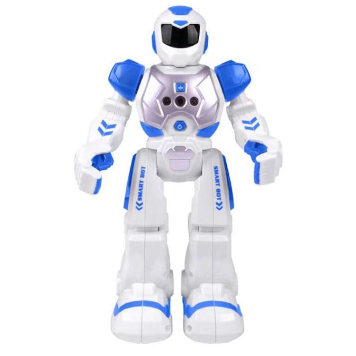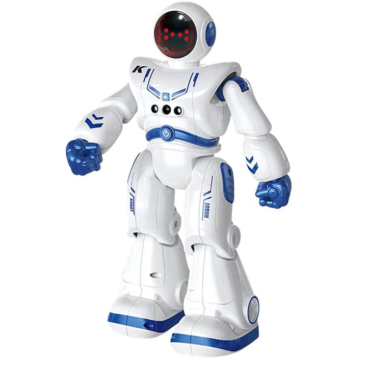 Детски робот JJRC R18, с дистанционно управление, 27×8,5×16 см, 50 движения, с батерия, бял/ син, + 8 години