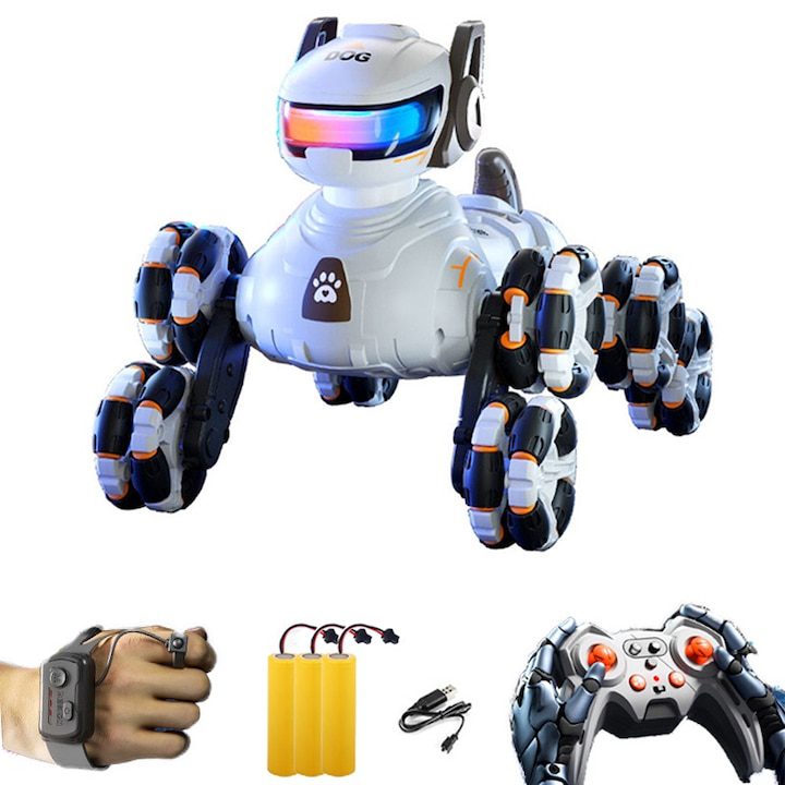 Кучето робот е забавна интерактивна играчка, която се управлява чрез дистанционно управление на честота 2.4 GHz или с жестове – така детето може да контролира движенията му по много интересен начин. Освен това роботът изпълнява музика и свети, което прави играта още по-атрактивна и стимулира детското въображение и сетива. Размерите му са компактни, а дизайнът – предназначен специално за момчета между 6 и 13 години, което го прави подходящ подарък за продължителна игра и развитие.