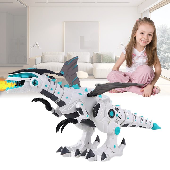 Този интелигентен динозавър се управлява чрез удобно дистанционно, позволяващо му да издава звуци и да свети с очите си, които създават впечатление на живо създание. Той реагира на командите ви с разнообразни движения, което прави играта интерактивна и забавна за децата. Играта с него развива въображението и дава възможност на децата да се потопят в света на динозаврите по един лесен и увлекателен начин.