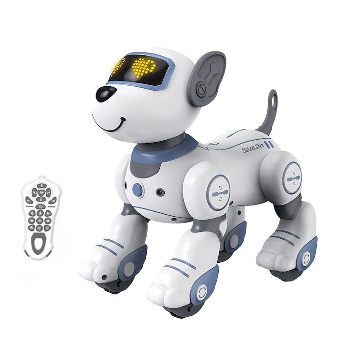 Интелигентно куче-робот LEBLOU, С дистанционно управление, Интерактивно, Пеещо, Танцуващо, Изпълняващо каскади, Функция за проследяване, Жестове с докосване, Бял/Син/Сив