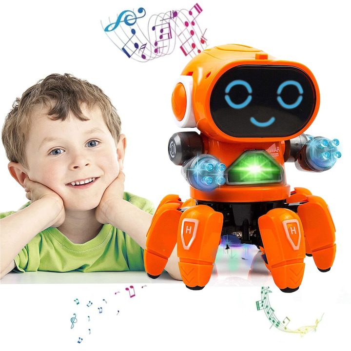 Интерактивен робот, Puepoul, Мултифункционален, +3 години, Пее, Танцува, ABS, Оранжев