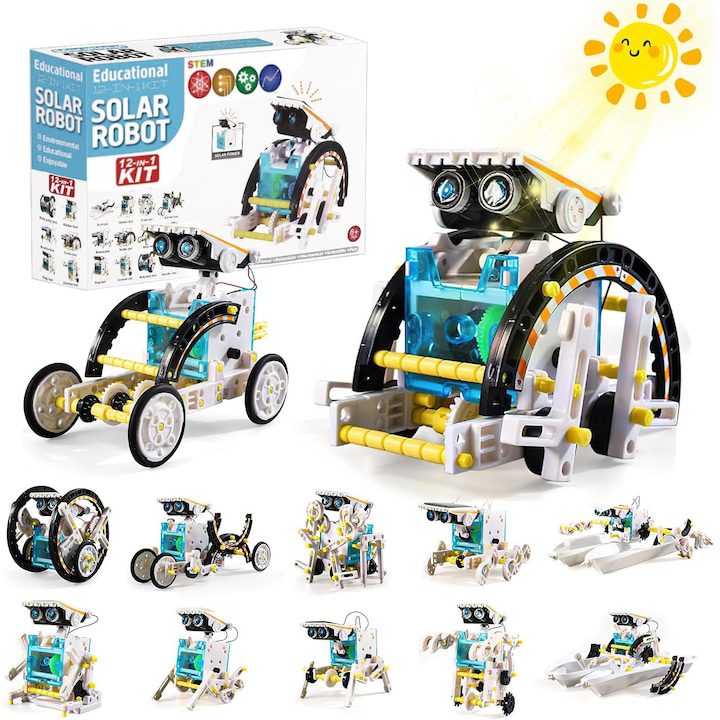 Комплектът Mappy 12в1 предлага забавен и образователен начин децата да се запознаят с роботиката чрез конструиране на 12 различни модела роботи от един и същи комплект. Соларното зареждане дава възможност за работа без батерии, като използва енергия от слънцето, което не само е екологично, но и учи децата на важността на възобновяемите източници на енергия. Този набор от занимания развива творчеството, техническите умения и логическото мислене, показвайки на децата как работят електронните устройства и как устойчивата енергия може да се прилага в реалния живот.