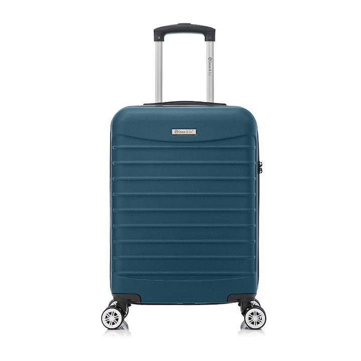 Кабинен куфар Quasar & Co.®, модел LINE, 55x36x20 см, пътнически куфар за ръчен багаж, ABS 2.8 мм, двойно защитен цип, кодово заключване, телескопична дръжка, 4 двойни безшумни колела 360°, до 10 кг, Петролово синьо