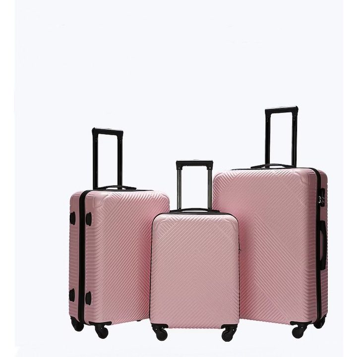 Комплект куфари, количка 3в1 AT PERFORMANCE® – ABS, 4 колела, със заключване, розов