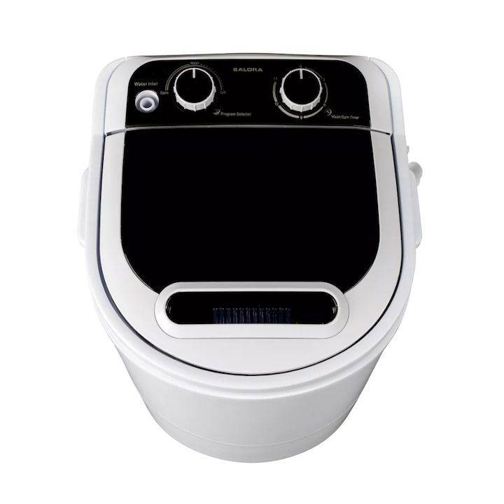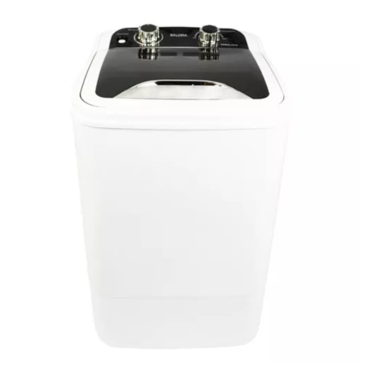 Пералня Salora, капацитет 3,6 кг, полуавтоматична, вертикално зареждане, идеална за малки пространства/дом/каравана/къмпинг, 1300 оборота, ниска консумация, компактна, лесна за използване, бяла