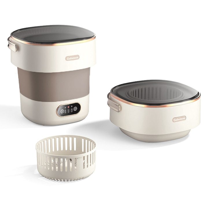 Мини пералня, Golxmse, 13L, цифров дисплей, 3 програми за пране, преносима и сгъваема, почти бяла
