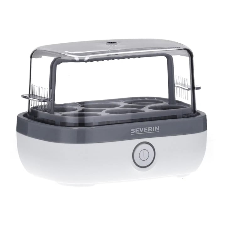 Яйцеварката Severin комбинира удобство и функционалност, позволявайки ви да приготвите яйца с различна степен на твърдост благодарение на включения измервателен съд и практичен капак.
