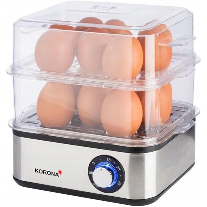 Електрическа яйцеварка 2 в 1 Korona, капацитет 16 яйца, неръждаема стомана, светлинен индикатор, 500 W