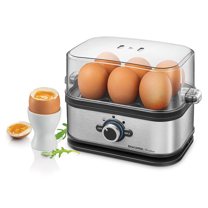 Електрическа яйцеварка Tescoma President, изработена от неръждаема стомана | Готви до 6 яйца, 3 прецизни програми за готвене | Лесна работа и дозиране на вода | Здрава и издръжлива | Захранване от 230V