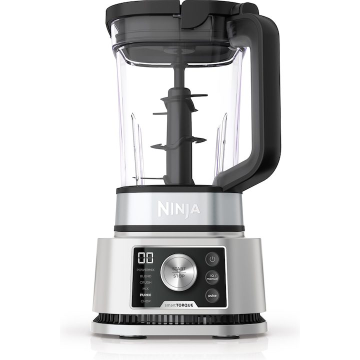 Блендер Ninja Foodi Power Nutri 3-in-1 with Smart Torque, 6 програми Auto-IQ, CB350EU 1200 W, Купа 2.1 л, Кана 700 мл и купа 400 мл, Черен/Сребрист