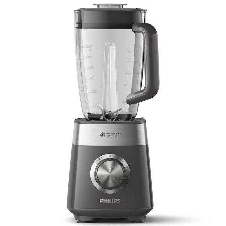 Блендер Philips HR3020/00 Series 5000, 1000 W, Oстриета New ProBlend Plus, Kупа ProBlend Plus, 3 скорости плюс импулс, Подвижни остриета, Капацитет 2 л, Тъмносив