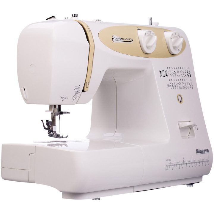 Π•Π»Π΅ΠΊΡ‚Ρ€ΠΎΠΌΠ΅Ρ…Π°Π½ΠΈΡ‡Π½Π° шСвна машина Minerva LV750, 23 ΠΏΡ€ΠΎΠ³Ρ€Π°ΠΌΠΈ, 850 ΠΈΠΌΠΏ/ΠΌΠΈΠ½, 70W, бяло/Π·Π»Π°Ρ‚Π½ΠΎ